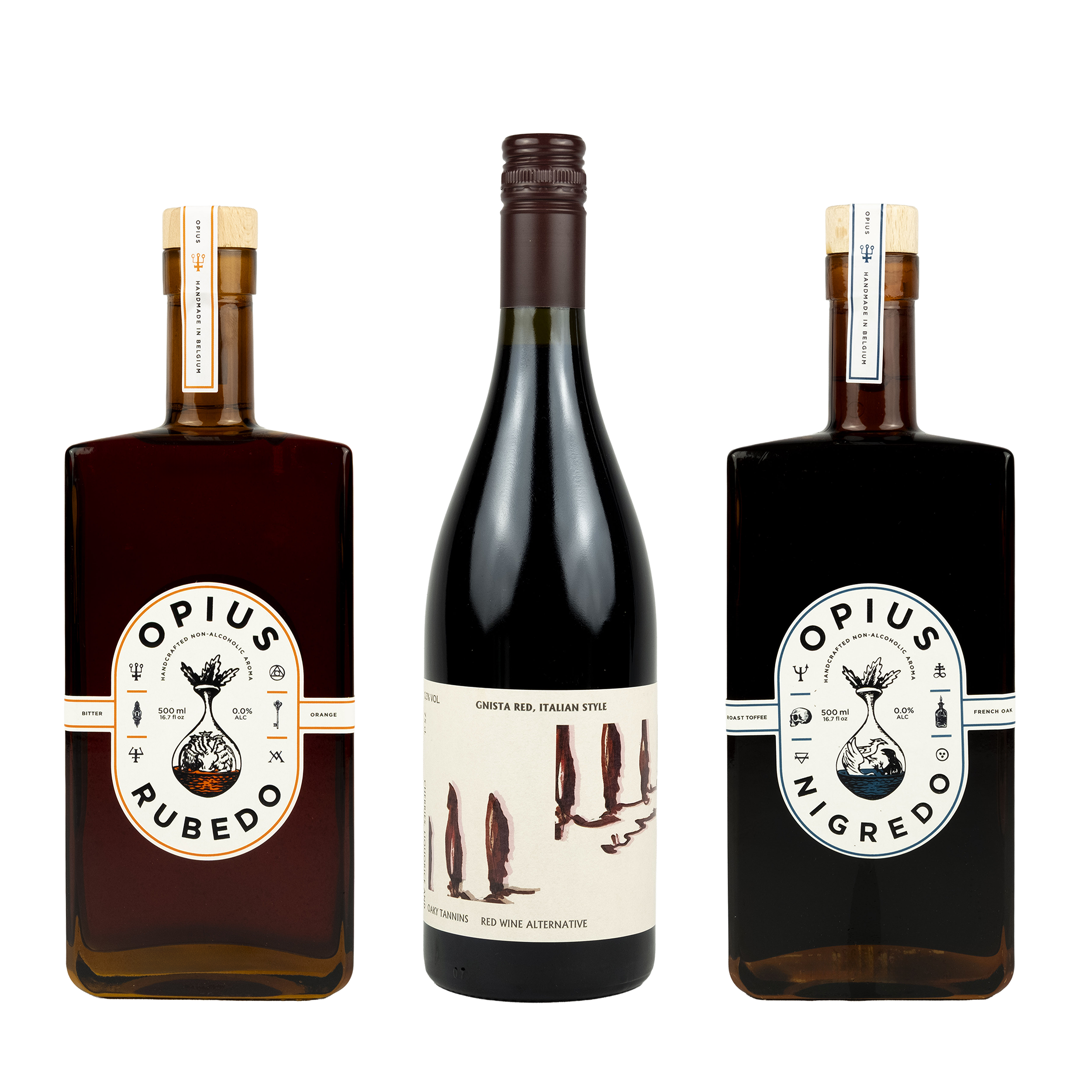 Set für einen No-groni aus OPIUS Rubedo, OPIUS Nigredo und Gnista Italian.
